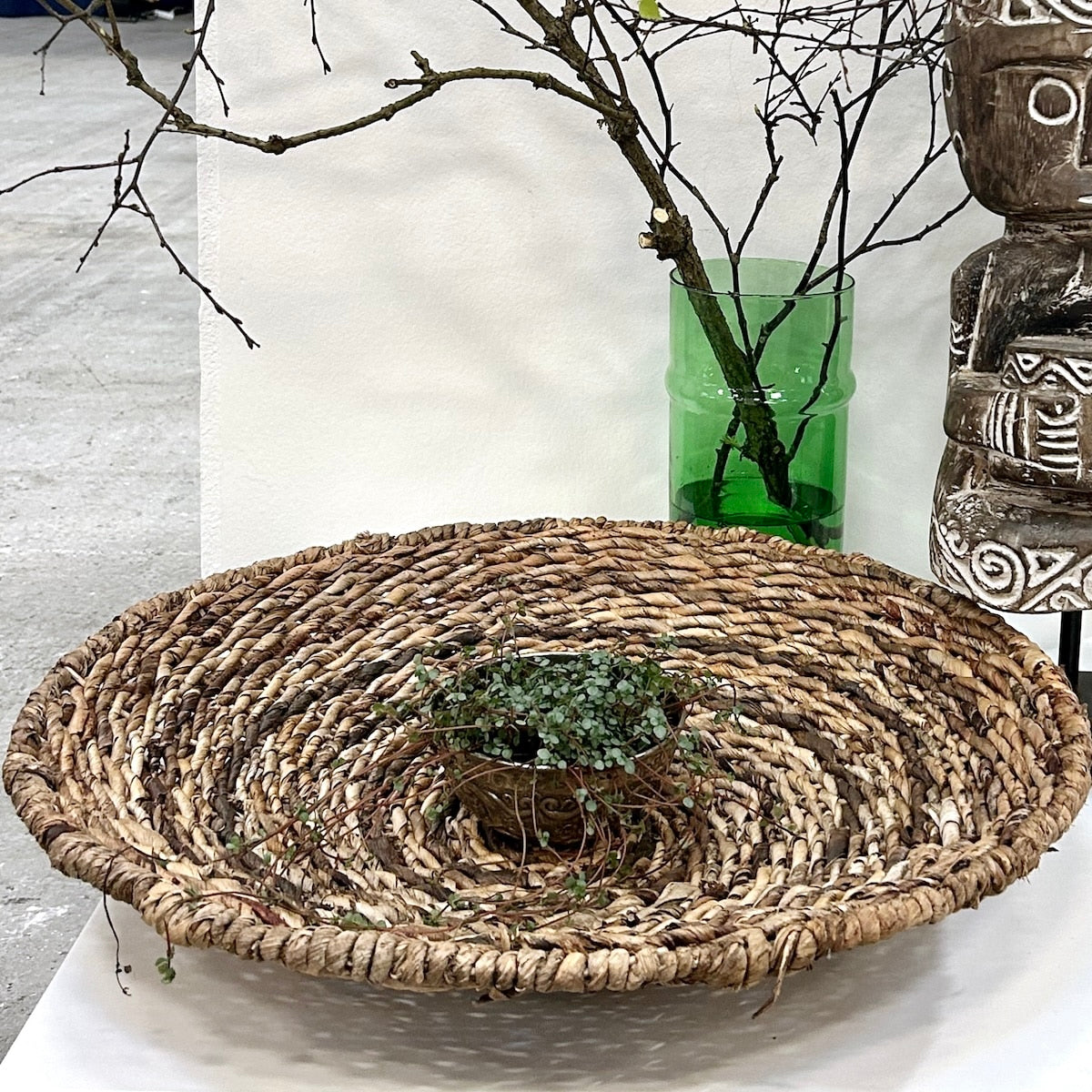 Det smukke Bali Abaca fad er håndflettet i kraftige bananblade fra Moder Natur i Indonesien. Fadet er utroligt dekorativt som deko ophæng på væggen – alene eller i et samspil med andre fade og ting. Du kan også bruge det som et stort fad på gulvet med blade og aviser, fjernstyrer, brænde, tæpper, håndklæder, garnnøgler mm. Eller sæt det på spisebordet til frugt og grønt – eller blot som pynt og ‘fyld’ på bordet, hvis I kun spiser 2 personer:).