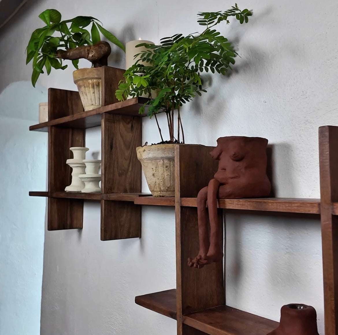 - Rustik reol fremstillet i gammelt indisk træ