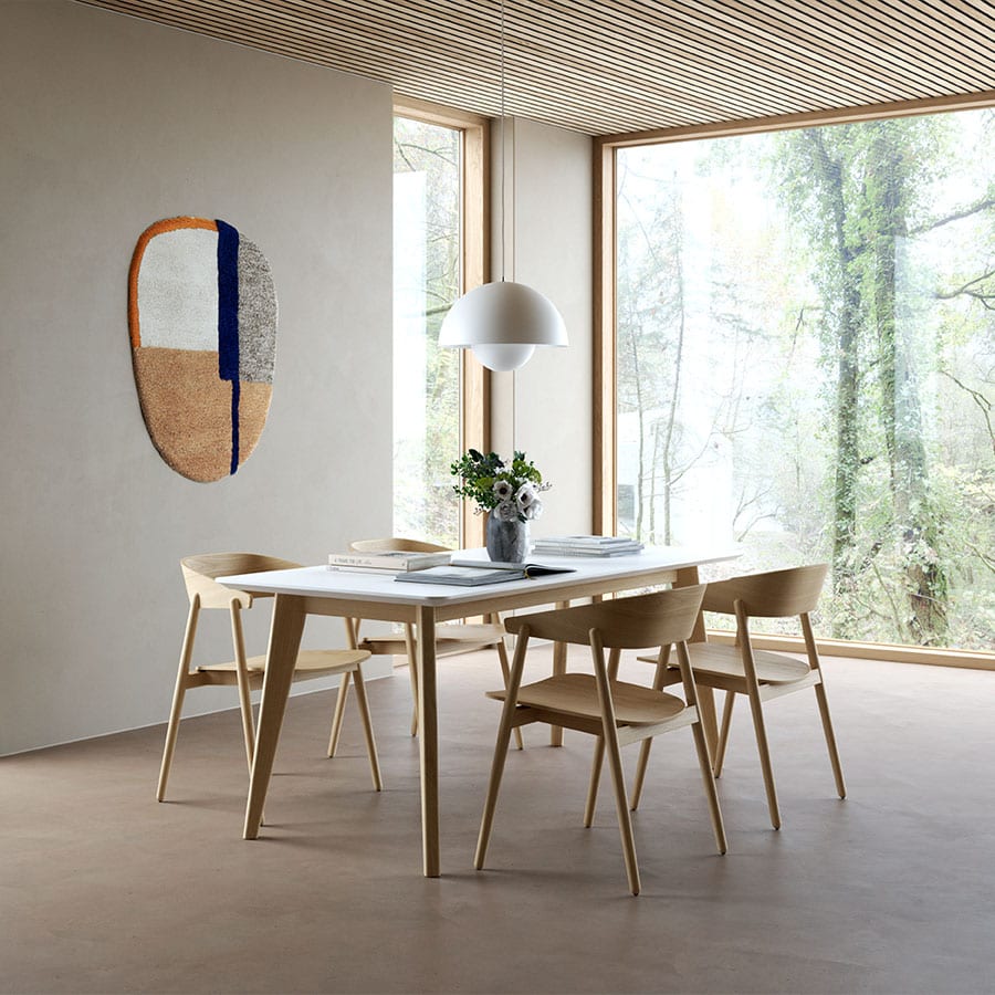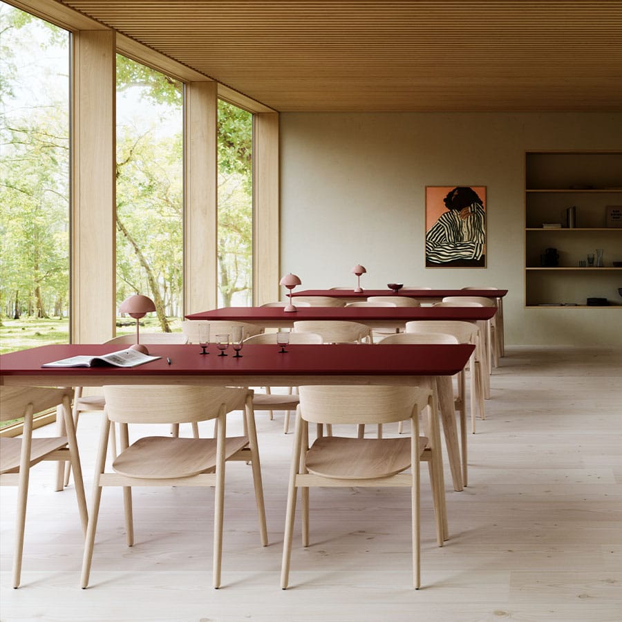 Det klassiske understel i massivt egetræ tilfører bordet et let udtryk og en ekstra dimension af naturlig varme. Bordpladen fås med laminat eller linoleum i et stort udvalg af farver, der gør bordet velegnet til mødelokaler og kantiner. Med sin alsidighed og tidløse design vil dette bord være en værdifuld tilføjelse i mange år fremover.