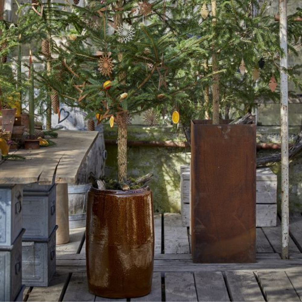Denne glaserede krukke er meget dekorativ, både med og uden blomster. Er skøn at mikse med terracottakrukker.