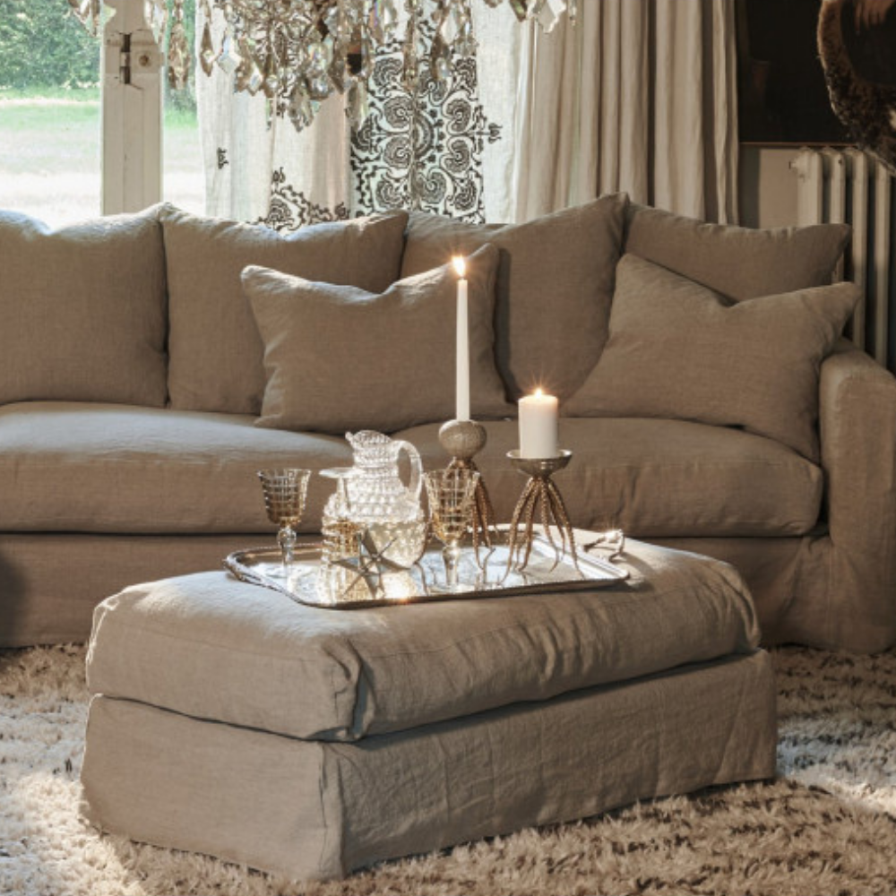 Vær opmærksom på, at hør er et naturmateriale, og kan differentiere i nuancen samt at farven vil ændre sig over tid alt efter hvor meget sollys møblet er udsat for. Vær desuden opmærksom på, at farverne du ser på vores webshop også kan differentiere fra virkeligheden, da det er en digital oplevelse og ikke kan afspejle de rigtige farver 100%. Kig forbi vores fysiske butik, hvor du kan se materiale- og farveprøver, prøve at sidde i sofaen og få vejledning til valget af din sofa.