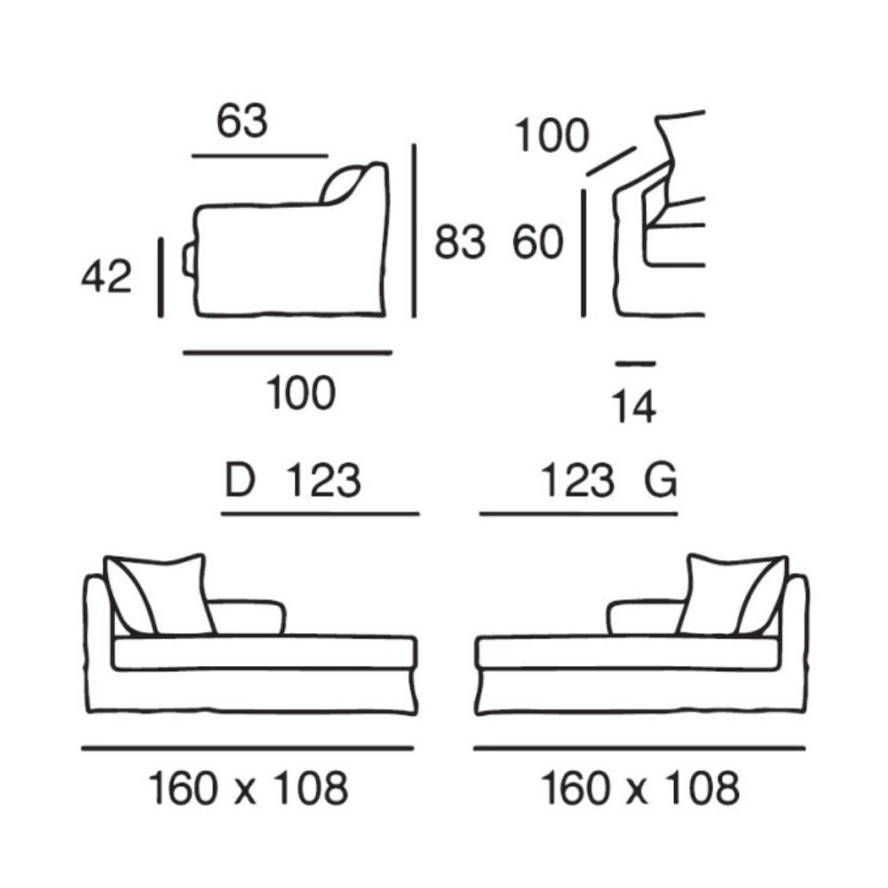 - Mål: B:108 x D:160 x H:83 cm. SB:94 cm, SD:123 cm, SH:42 cm