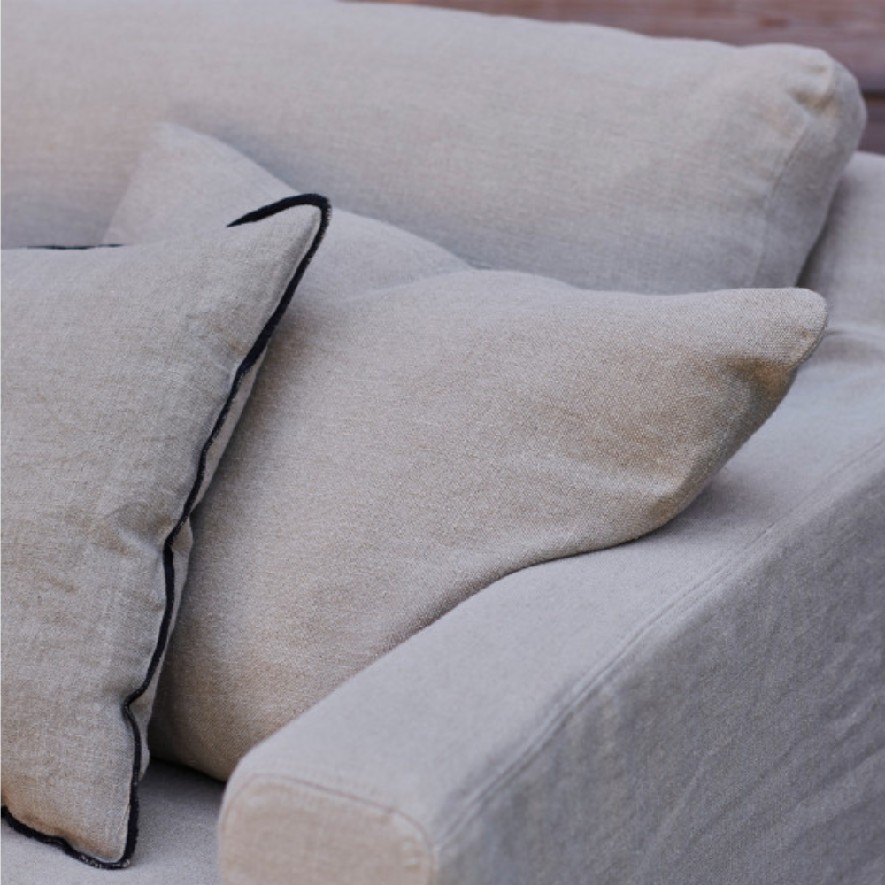 Modulet har super god komfort, og er let at vedligeholde, da betrækket er aftageligt og nemt kan renses. Du kan vælge imellem to forskellige kvaliteter og 22 forskellige farver - begge kvaliteter er i 100% hør - Newlin er en grovere vævning og Sweet er en finere udgave. Begge materialer er slidstærke og behagelige at sidde i. Sædehynder er bygget op af en kombination af skum og dun. Pudernes fyld er af 100% dun med udvendige syninger.