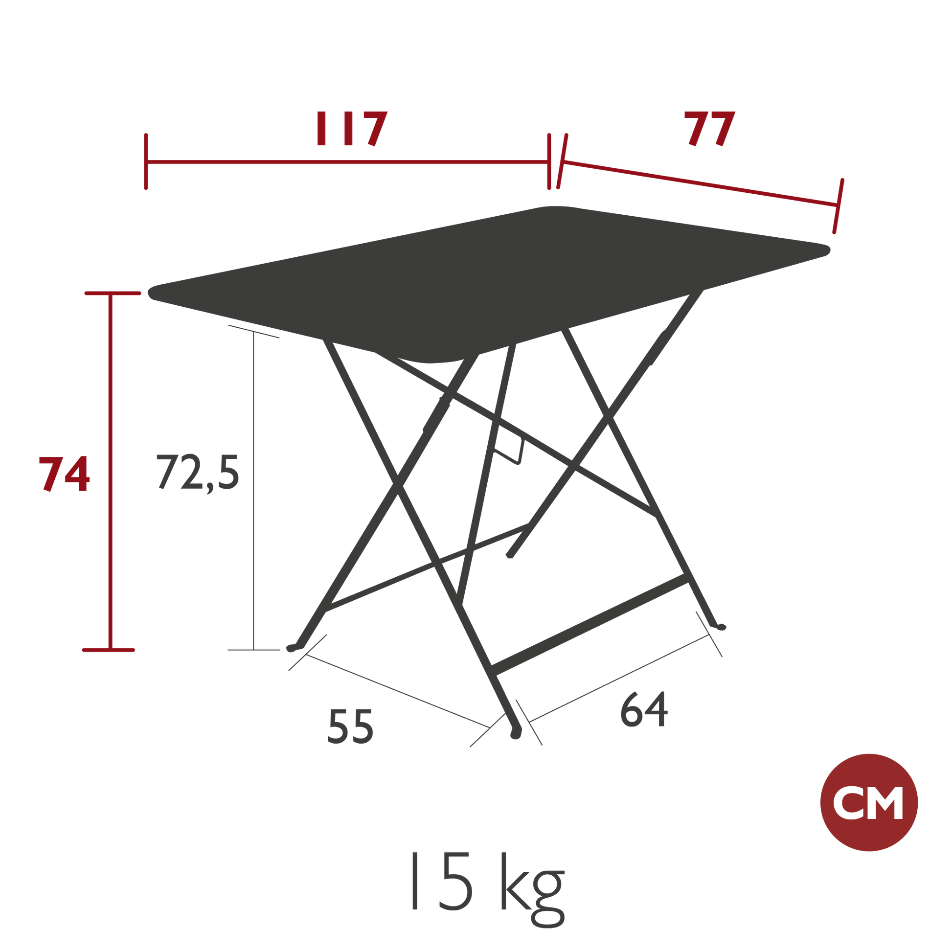 Med sine generøse mål på 117 x 77 cm har det plads til op til seks personer og skaber en behagelig ramme om dine måltider i det fri. Det er nemt at folde ud og ind og kan nemt opbevares, når du har brug for at frigøre plads. Den fås i en række livlige farver og tilfører din terrasse eller have et strejf af vitalitet og munterhed. Sæt den sammen med andre elementer fra kollektionen for at skabe et dynamisk og livligt rum.
