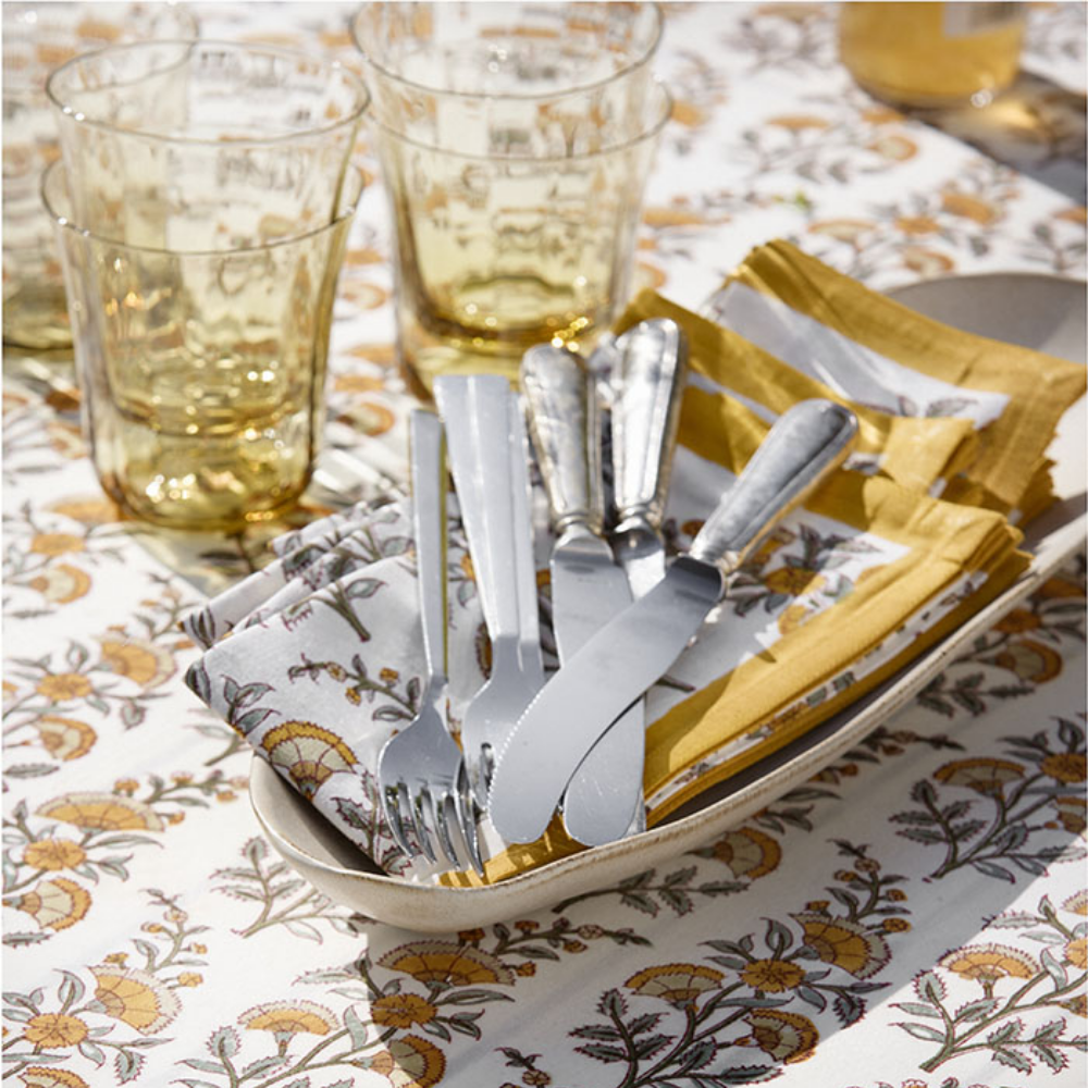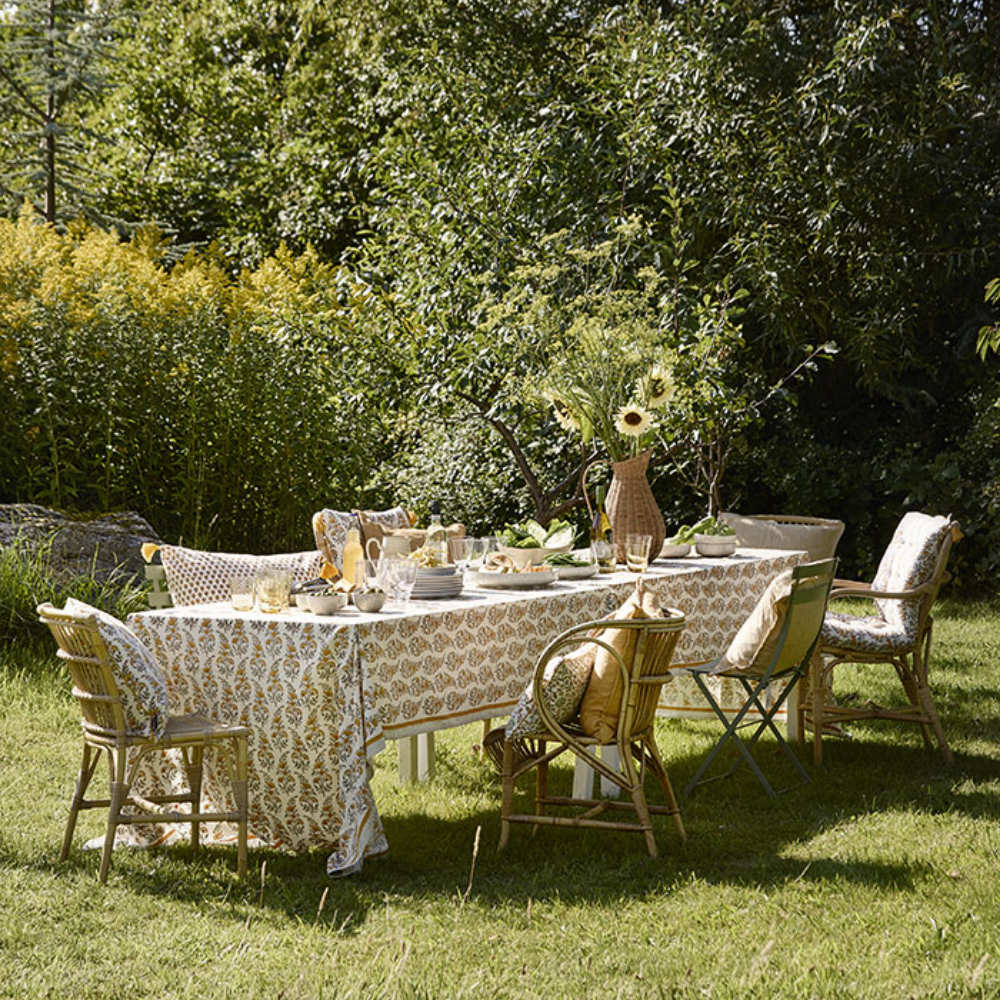 Dug med et håndlavet bloktryk, fremstillet af 100% bomuld. Vores bloktrykte tekstiler er håndlavede - en proces, der er både kompliceret og tidskrævende.