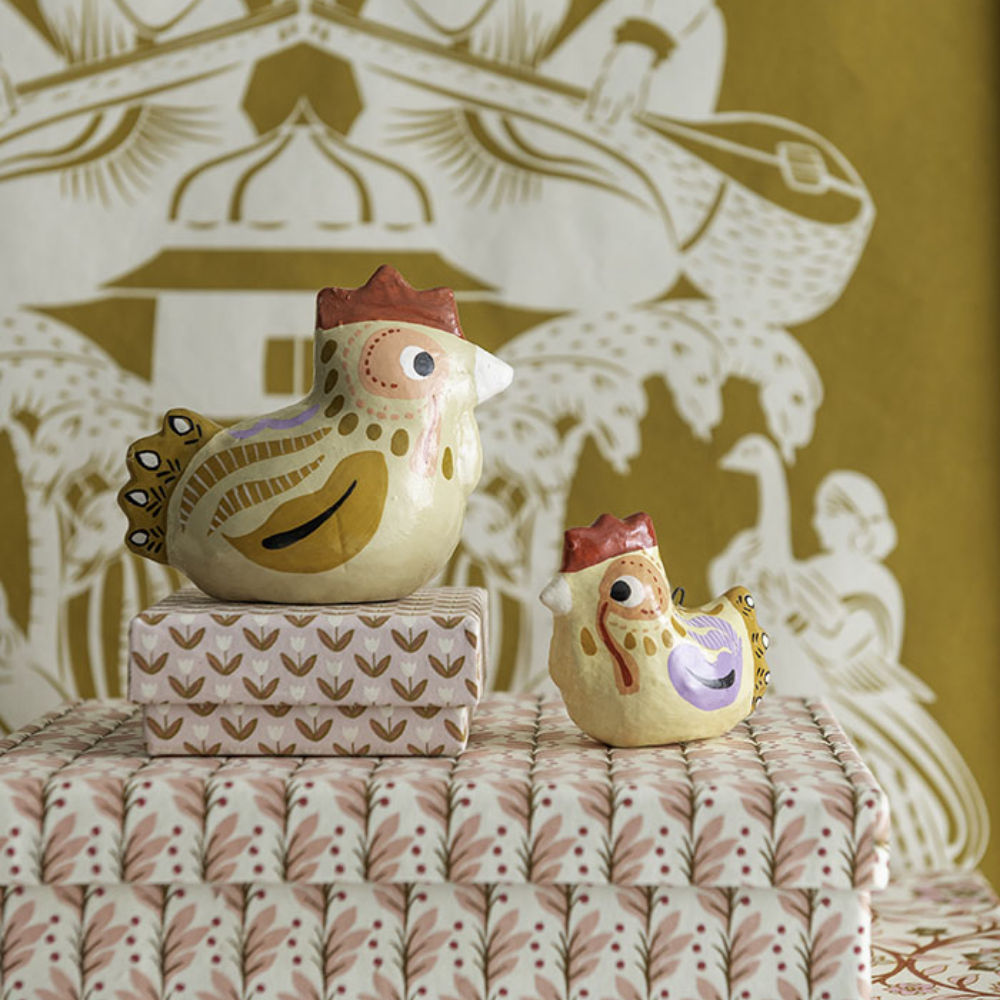 Hver af vores smukke papmaché-ornamenter er håndmalet i Indien, hvilket giver hvert stykke sin egen unikke karakter og charme.
