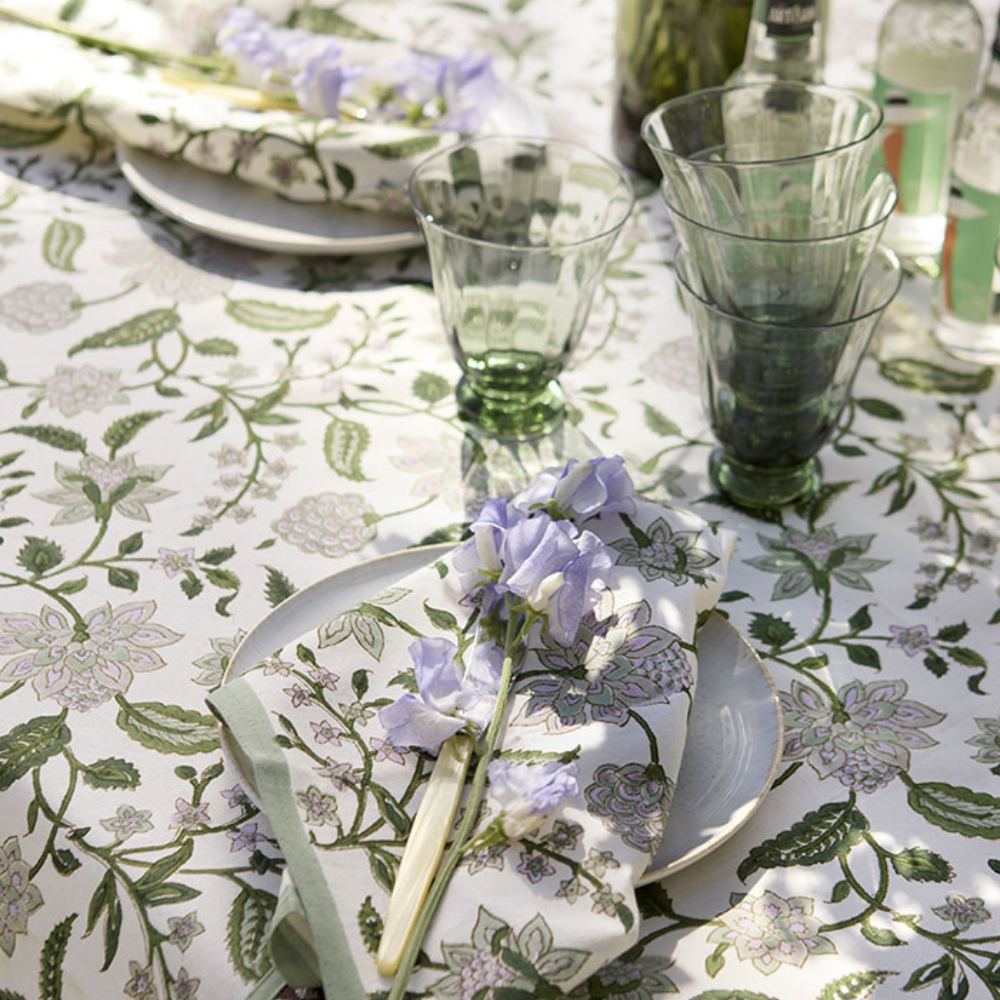 Dug med et håndlavet bloktryk, fremstillet af 100% bomuld. Vores bloktrykte tekstiler er håndlavede - en proces, der er både kompliceret og tidskrævende.