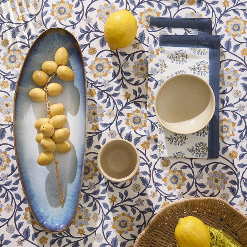 Dug med et håndlavet bloktryk, fremstillet af 100% bomuld. Vores bloktrykte tekstiler er håndlavede - en proces, der er både kompliceret og tidskrævende.