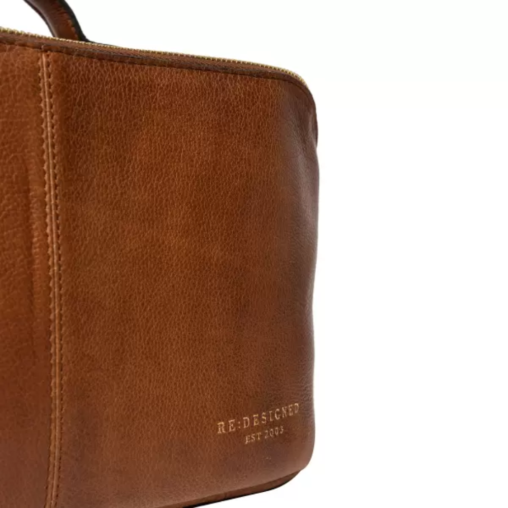 Det naturlige læder bearbejdes og indfarves inden overfladen færdigbehandles for at bevare læderets originale aftegninger. Efter indfarvningen påføres en let voks, som gør toilettasken blød og medgørlig, og afvisende overfor vand og snavs.Vedligeholdelse