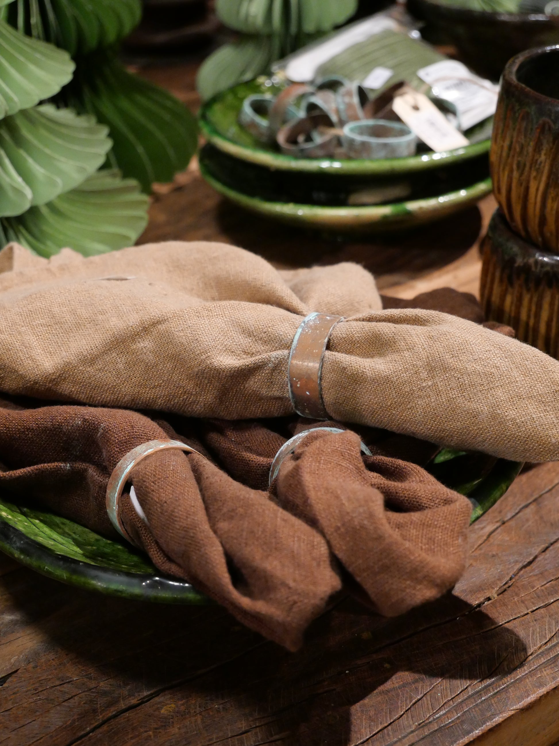 - Rustik og naturlig borddækning.