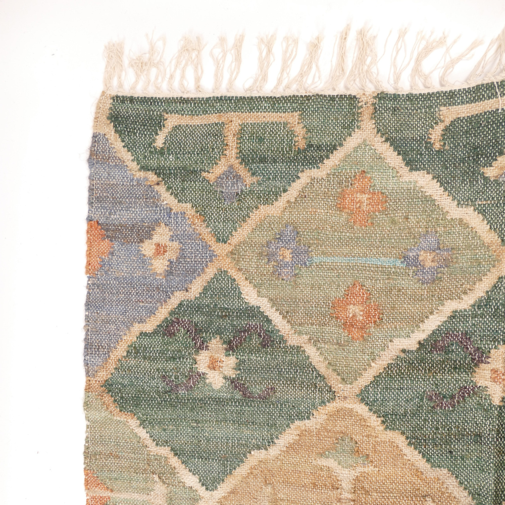 Med sine rige farver, elegante mønstre og luksuriøse tekstur tilføjer dette tæppe et strejf af varme og autenticitet til ethvert rum. Hver eneste tråd fortæller en historie om Indiens kulturarv og den omhyggelige proces bag skabelsen.