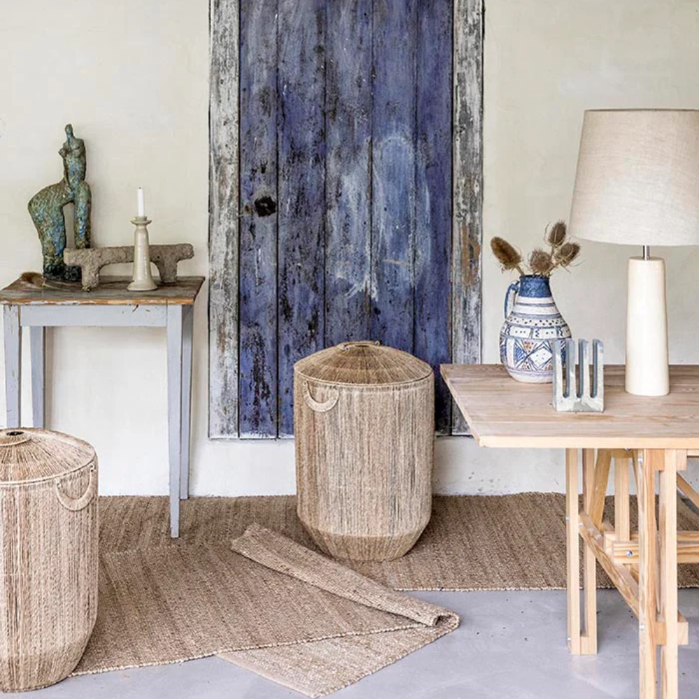 Elegante opbevaringskurve lavet af håndflettet jute.