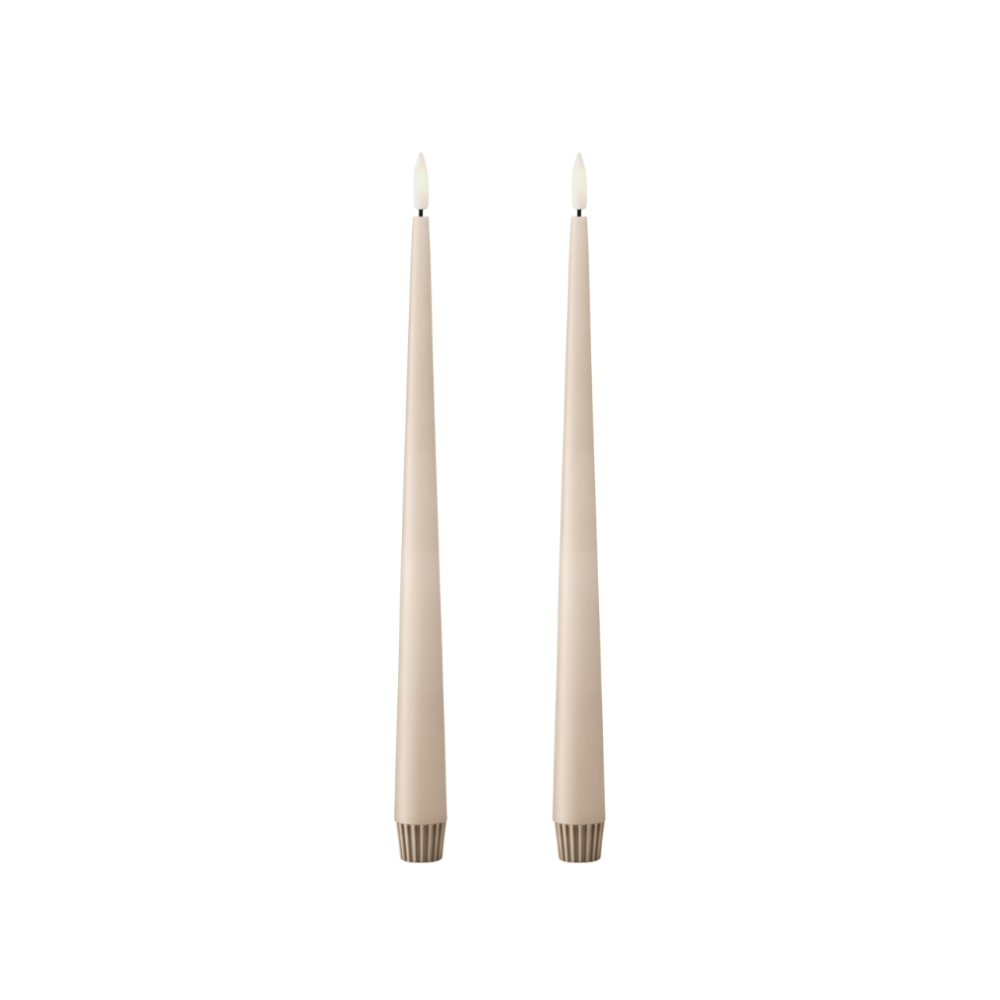 ester & erik LED-lys er lavet af ægte voks. Naturmaterialer som voks kan have naturlige variationer i farven, hvilket betyder at hvert lys kan variere i farvenuance. Overfladen kan også variere afhængigt af hvordan det er behandlet under produktionen. Disse variationer giver hvert lys sit eget unikke udseende og charme.