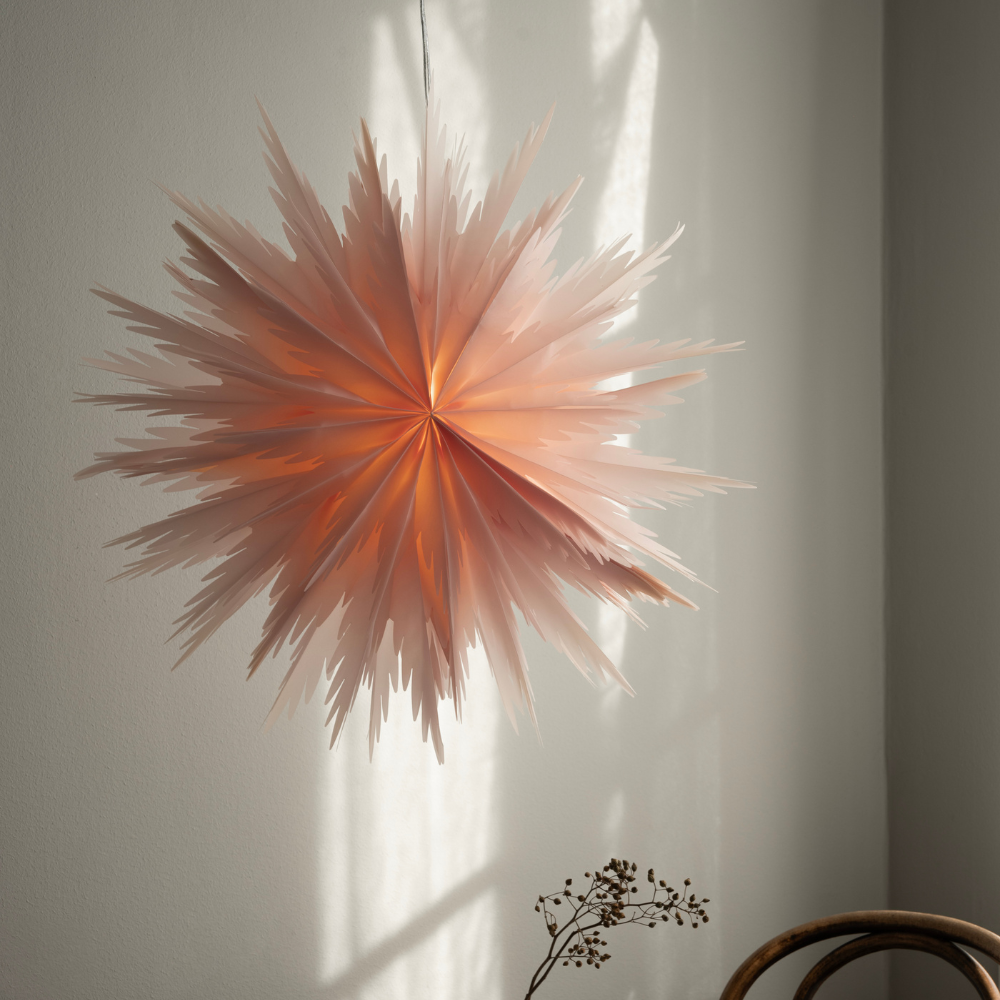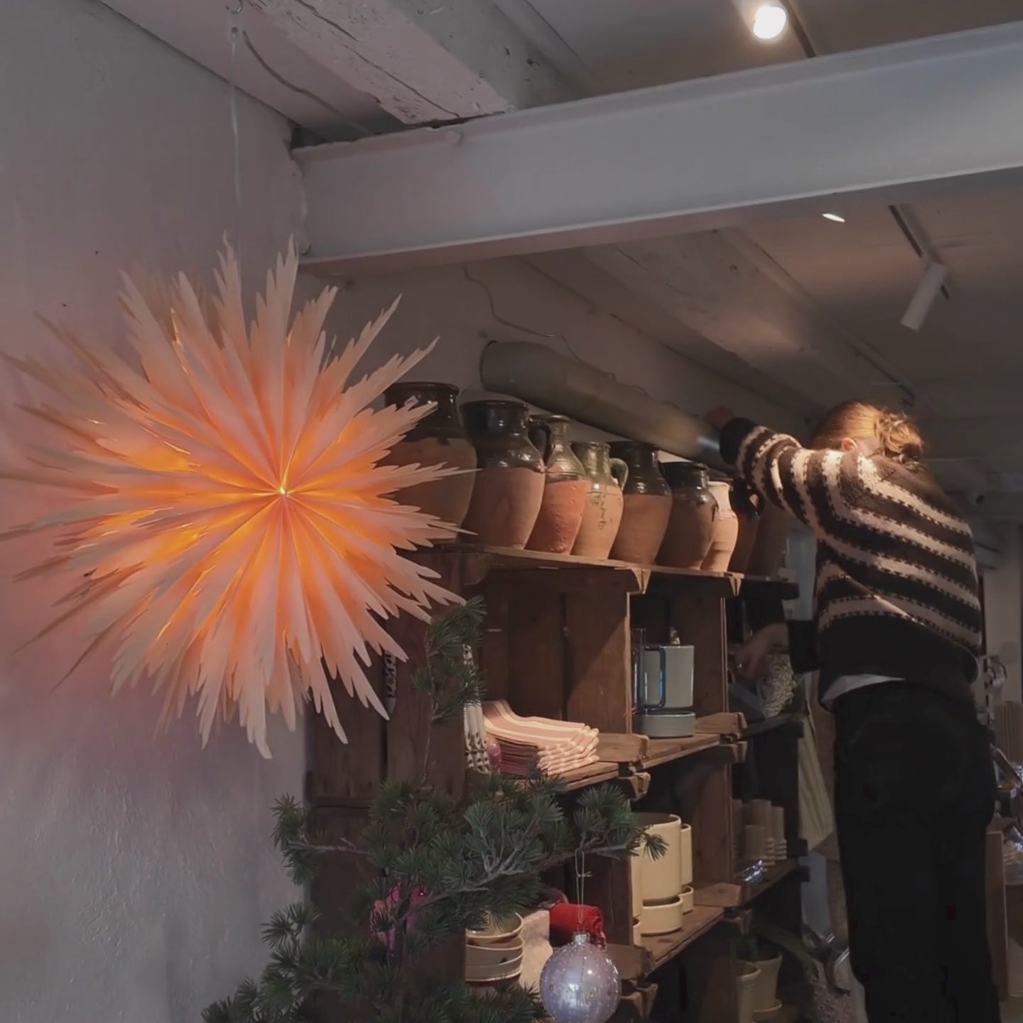 Julestjernerne fra svenske Watt & Veke er en moderne papirstjerne i et skinnende og delvist transparent papir, hvorfor den spreder et nærmest magisk lys.