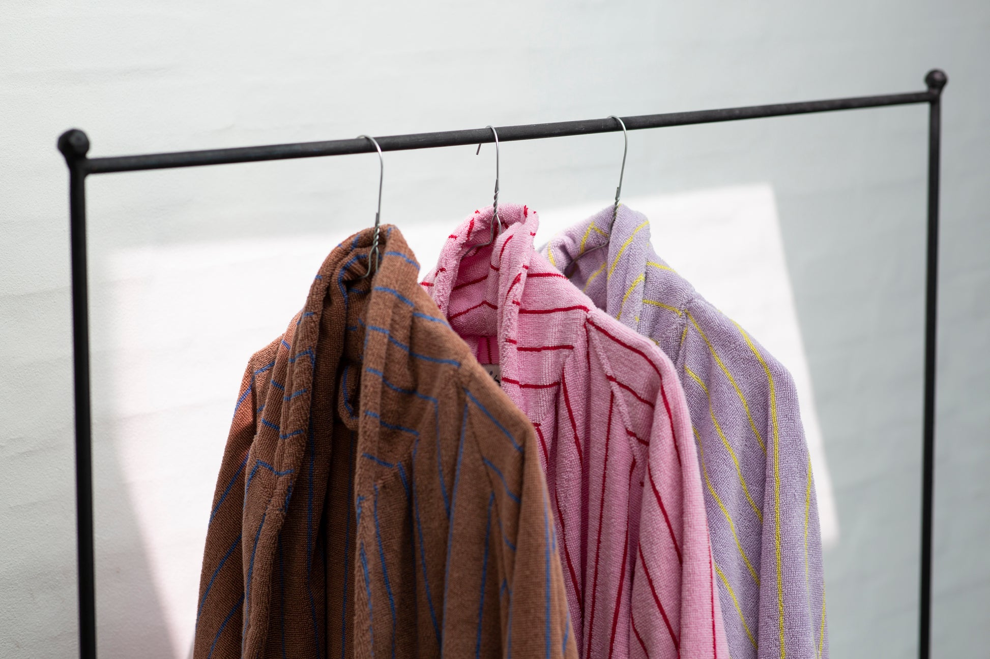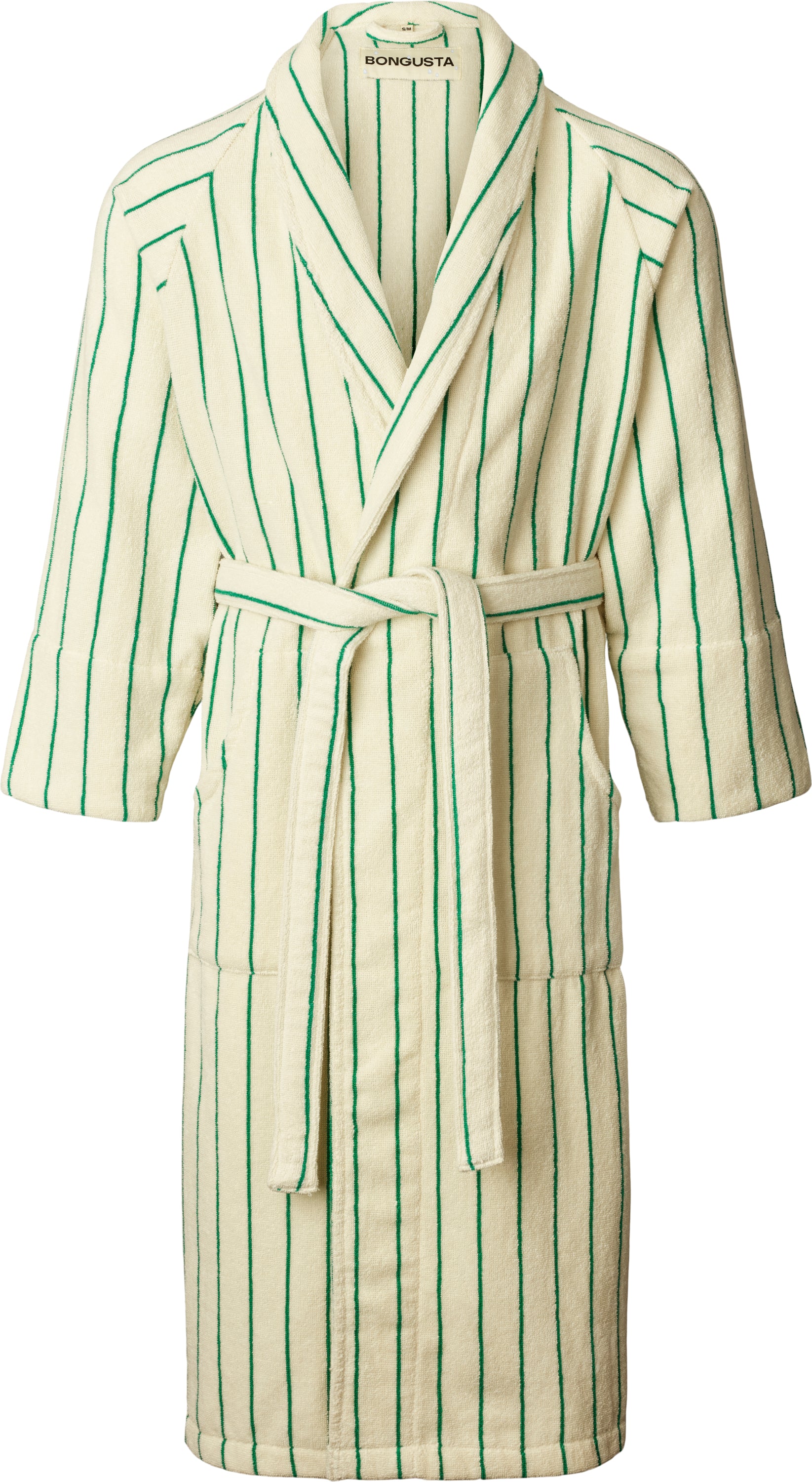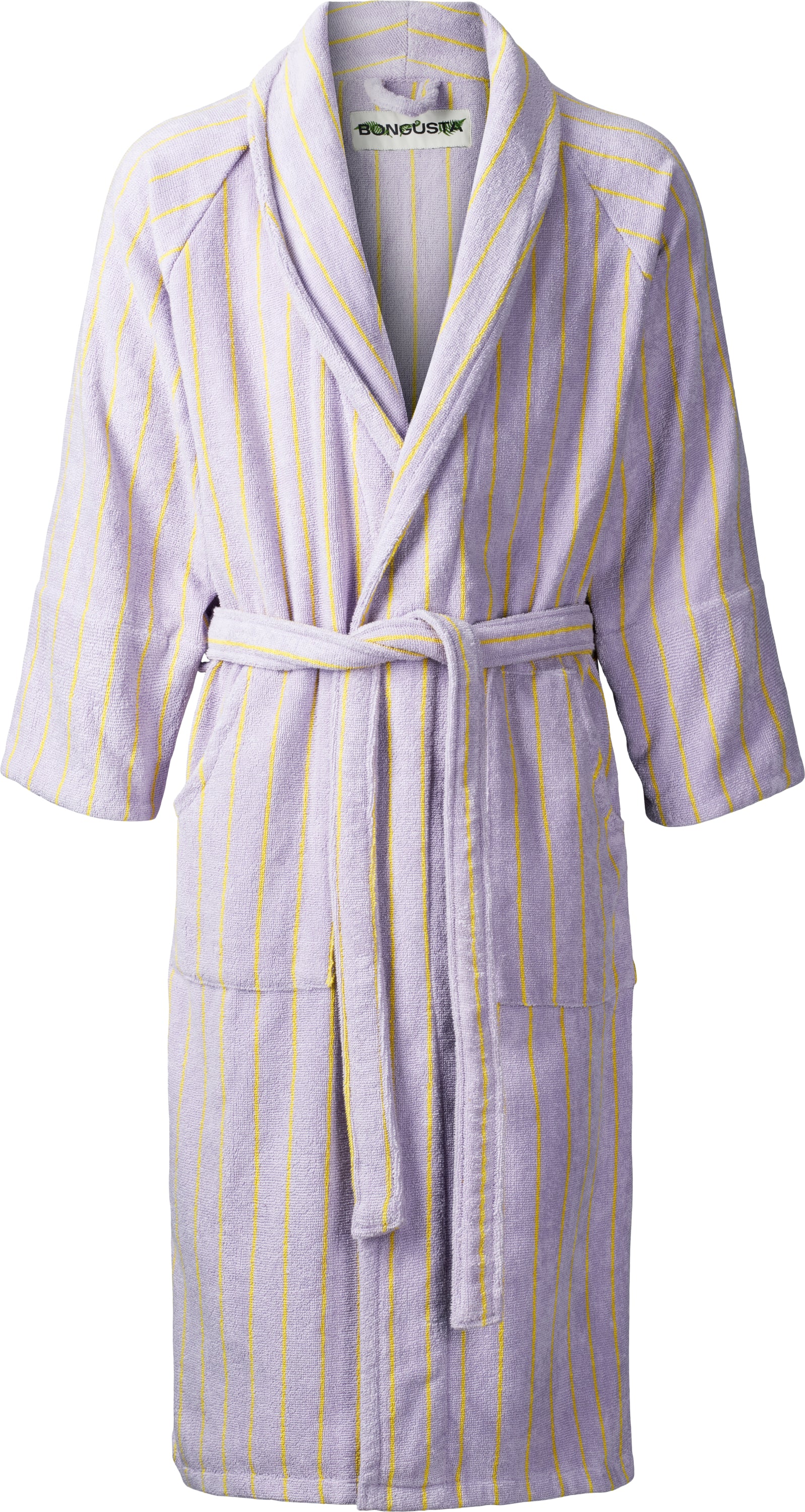 Naram badekåben har et klassisk, men moderne design med fine farver og striber. Badekåben kommer med sjalkrave, åben front, bæltelukning og to rummelige lommer - perfekt til afslappede morgener eller bare til hygge i sofaen.