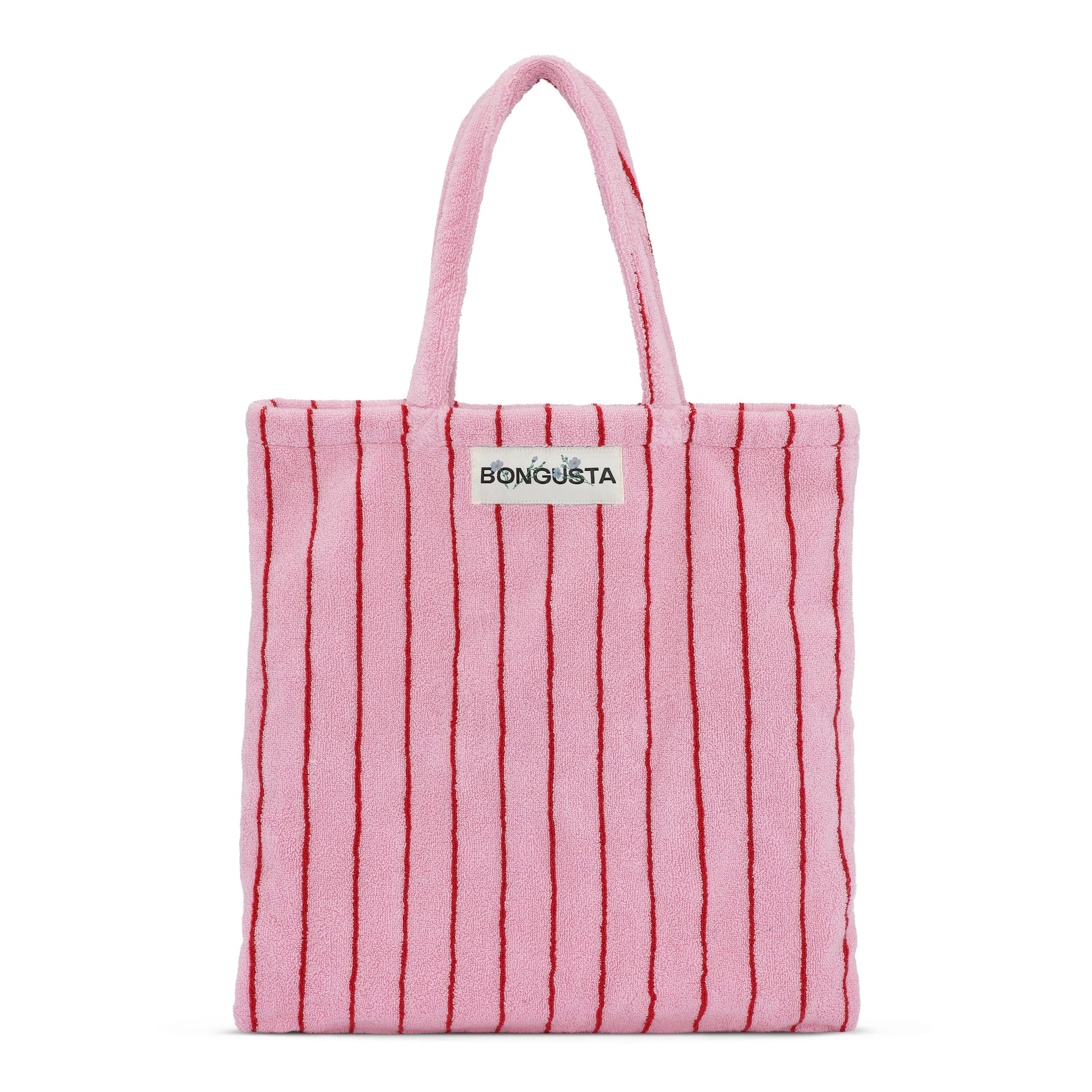 Med karakteristiske Bongusta-farver, klassiske striber og det vævede brandlogo er tasken et både praktisk og moderigtigt valg designet til at blive brugt hele året rundt og til alle dine daglige gøremål.