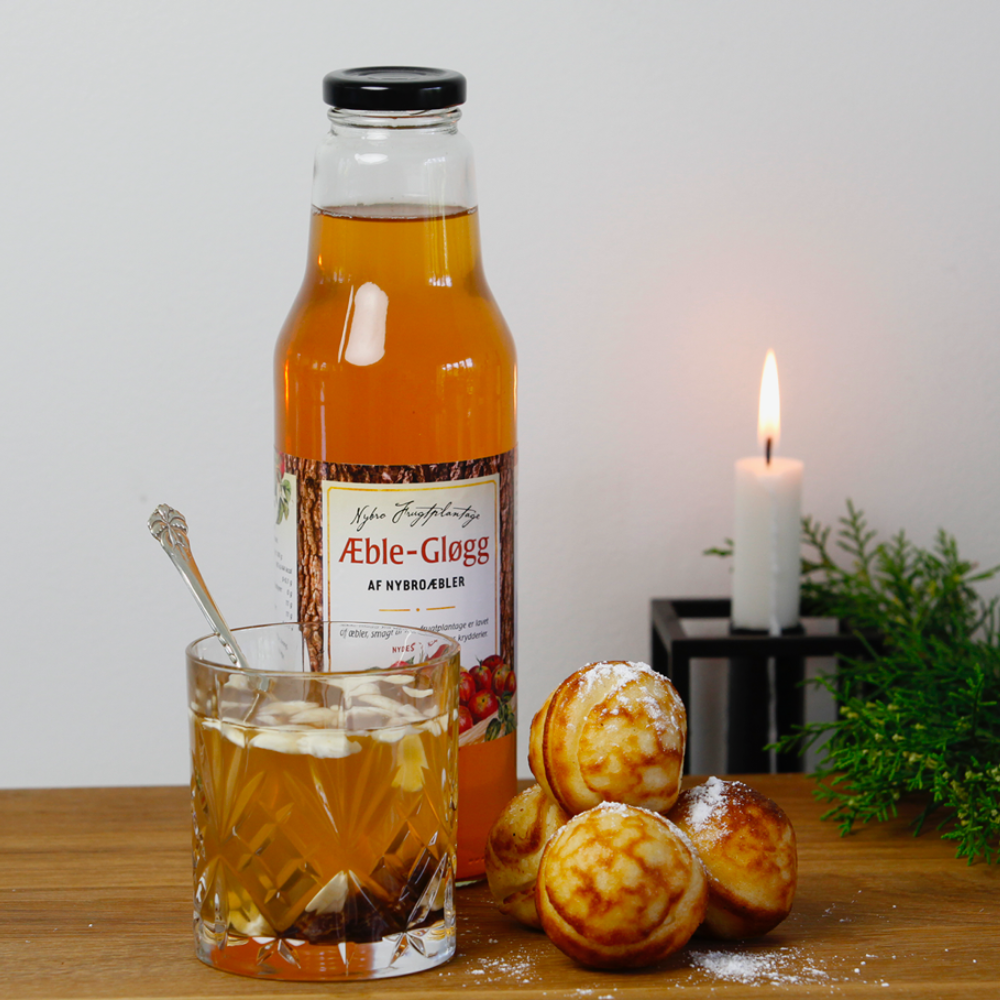 Skøn æblegløgg produceret af Nybros egne nøje udvalgte æbler tilsat vinterens krydderier.