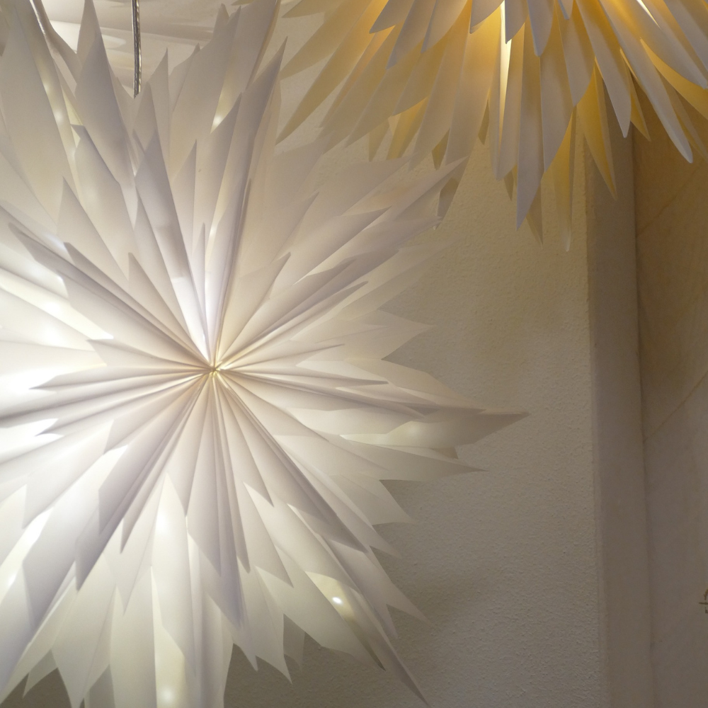 Julestjernerne fra svenske Watt & Veke er en moderne papirstjerne i et skinnende og delvist transparent papir, hvorfor den spreder et nærmest magisk lys.