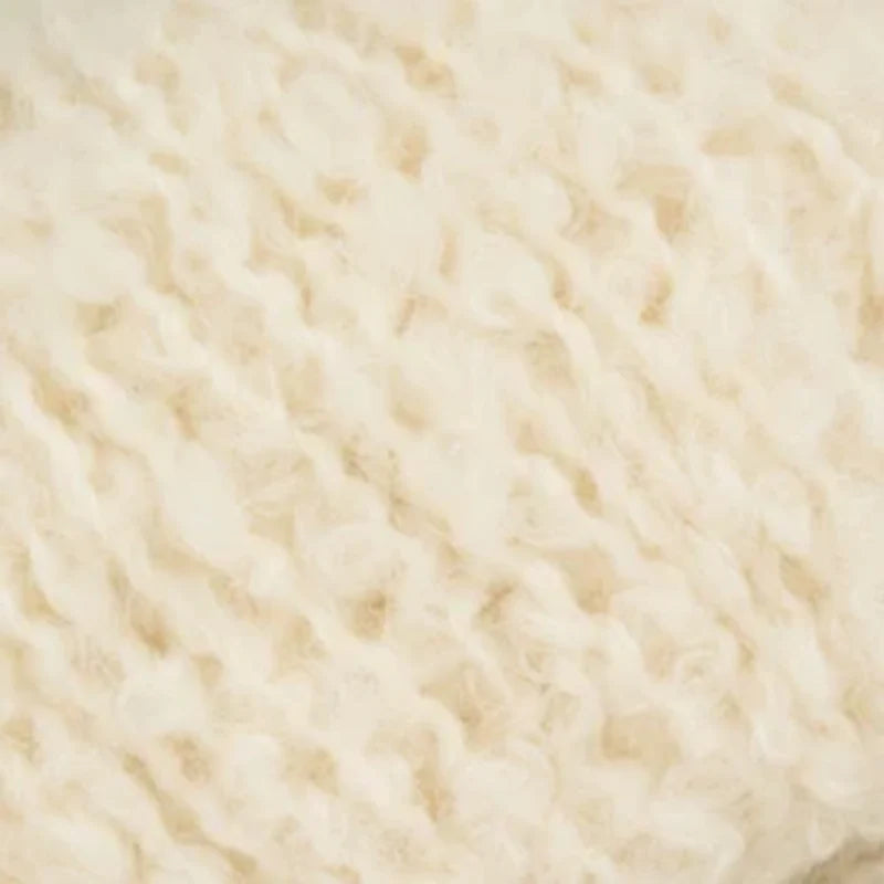 Denne bouchle garn har nærmest lukkede loops, hvilket giver den et tæt udtyryk selv på pind nr. 10. Den blødeste garn hvor du får en let og fyldig strik.
