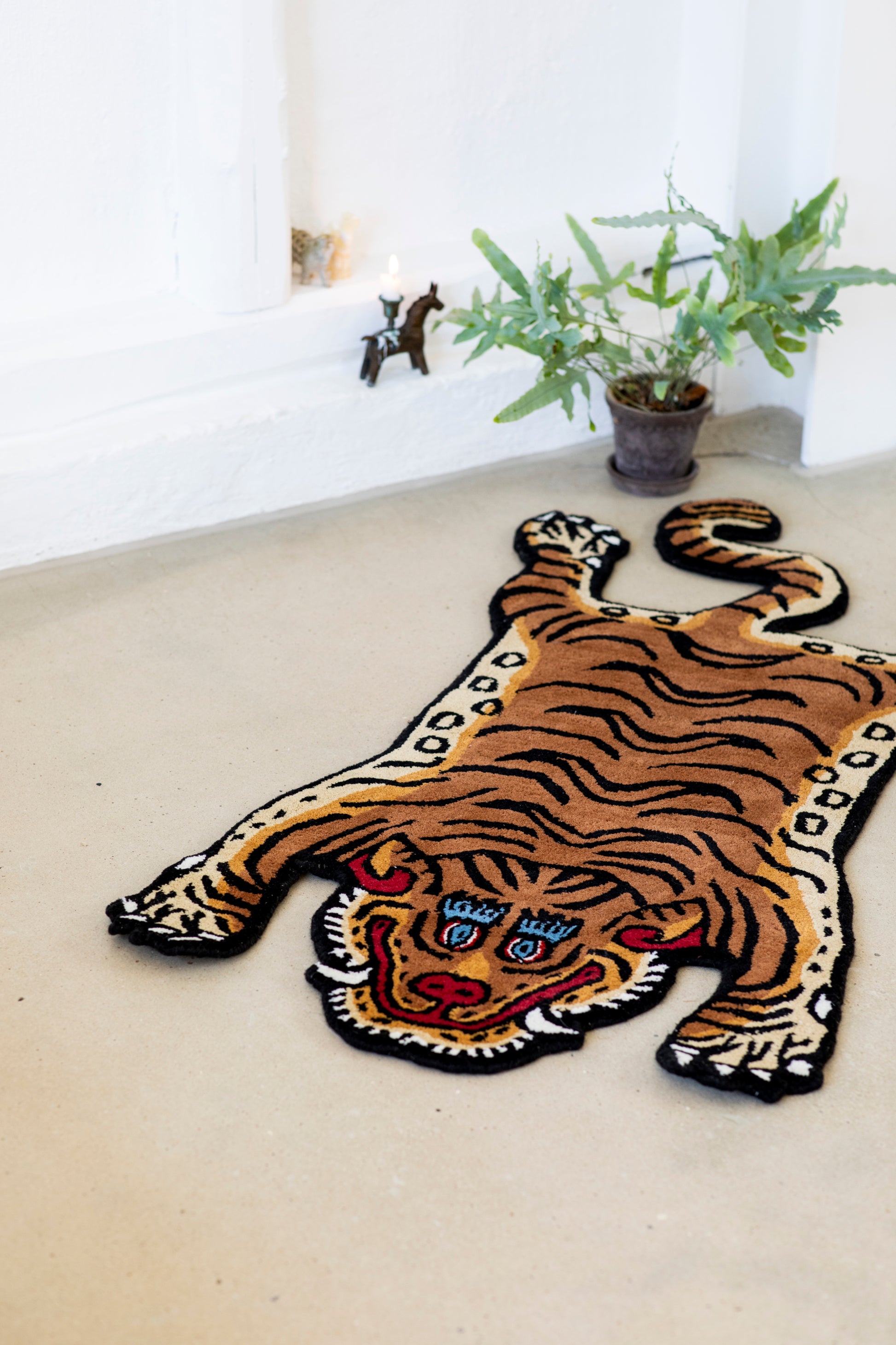 Hvert tigertæppe har sine egne karakteristika på grund af den enkelte vævers 'signatur' i håndværket. Uldkvaliteten giver holdbare tæpper, der føles lune og behagelige, når du går på dem.
