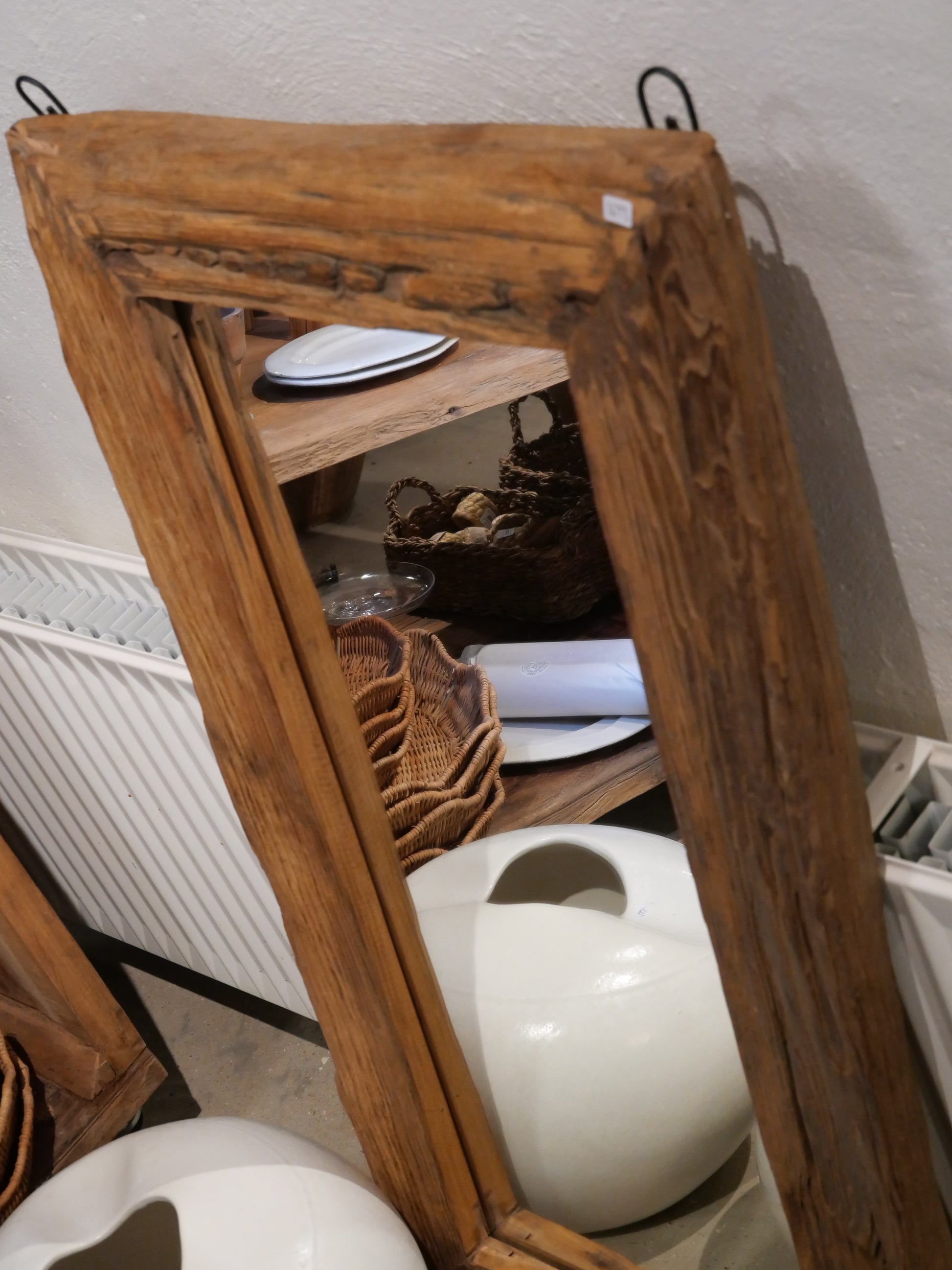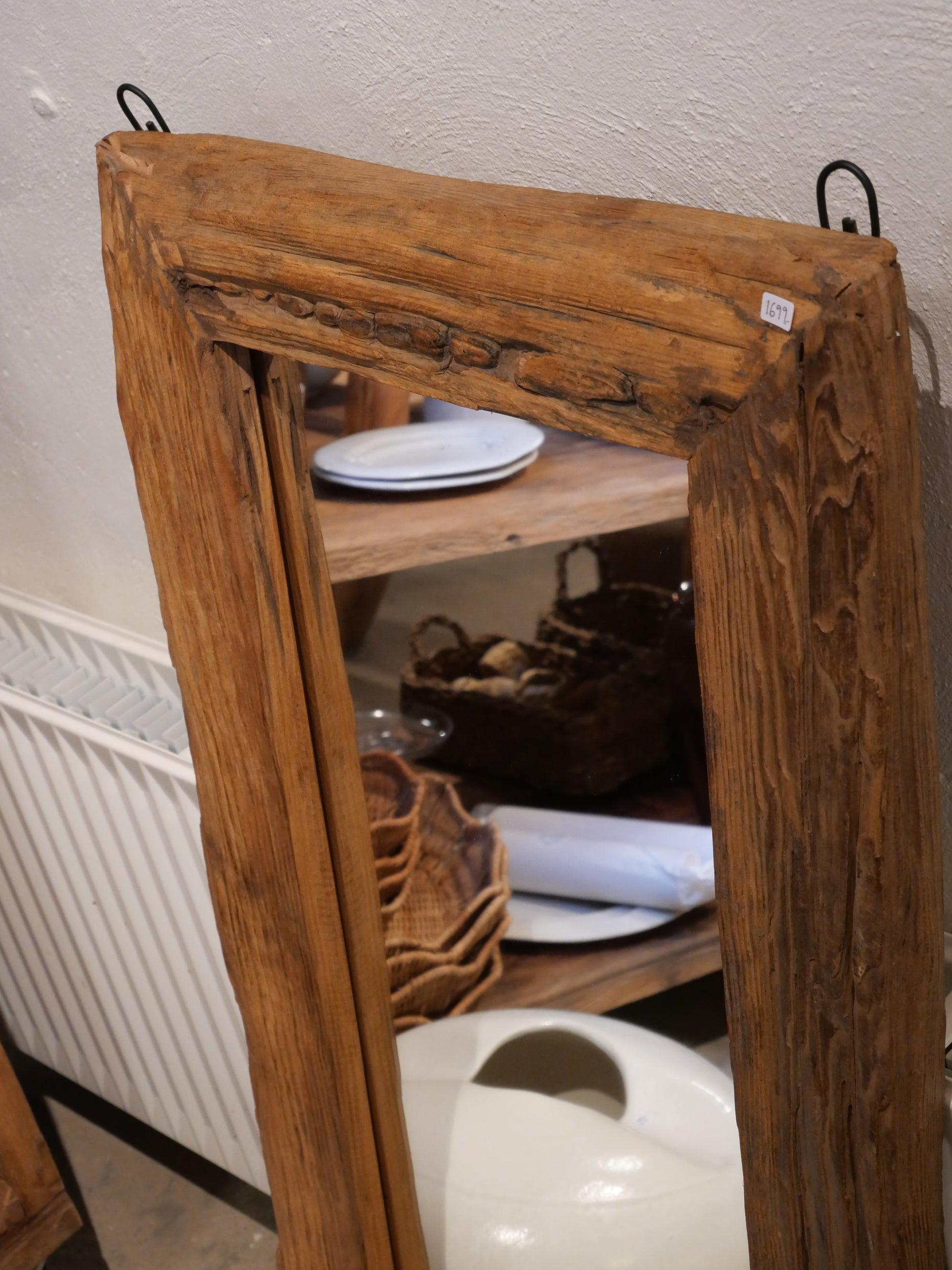 Spejlet er lavet af gammelt træ fra Indien. Så hvert spejl har sin egen charme og ikke to er ens.